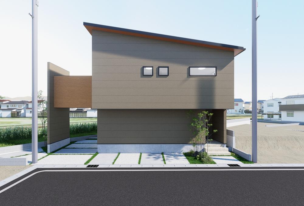 【建物プラン例/近隣分譲地/敷島ステラ・大津 雄琴4丁目6号地コンセプトモデルハウス】水平ラインが映えるモダンな外観デザインです。※CG画像の為、実際と多少異なることがございます。