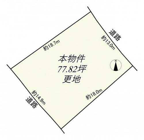 | 接道状況 | 南西 6.0m 公道 接面14.9m北東 15.0m 接面13.0m | ||||