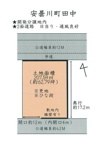 | 接道状況 | 南西 6.2m 公道 接面12.0m北東 12.0m 公道 接面12.0m | ||||