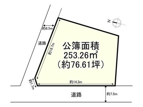 | 接道状況 | 西 7.5m 公道 接面14.3m北 6.5m 公道 接面18.7m | ||||