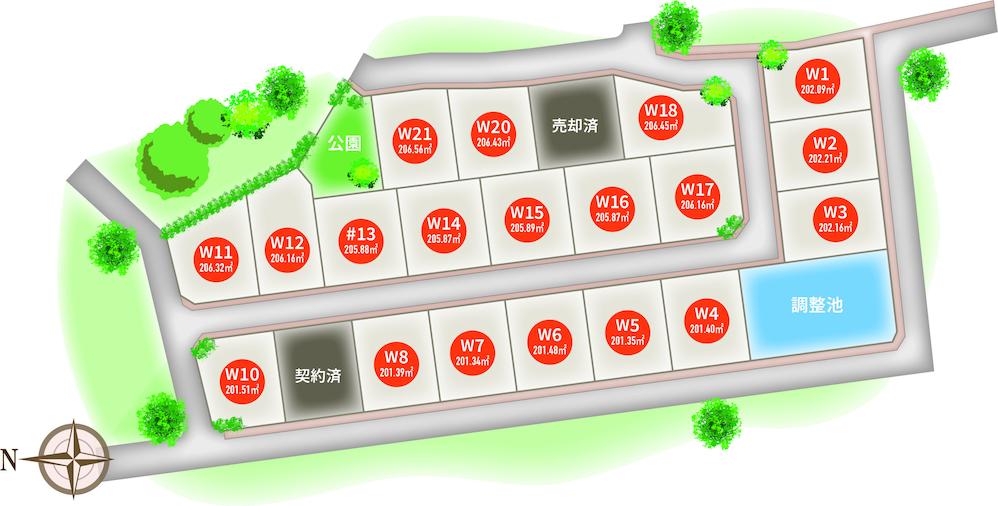 | 最多価格帯 | 1200万円台(10区画) | 販売区画数/総区画数 | 19区画/21区画 | ||