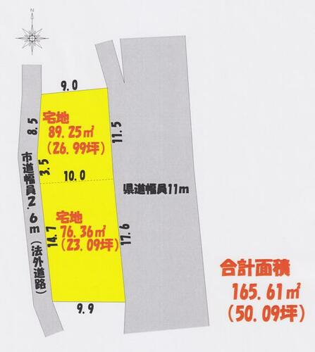 | 接道状況 | 東 11.0m 公道 接面29.0m西 2.6m 接面26.7m | ||||