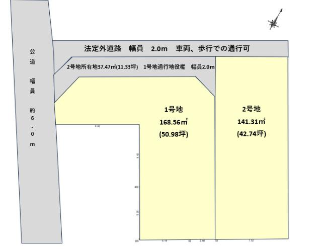 | 建ぺい率・容積率 | 60%・200% | 私道負担・道路 | 無、西6m幅(接道幅2.2m)、北4m幅(接道幅18.5m) | ||