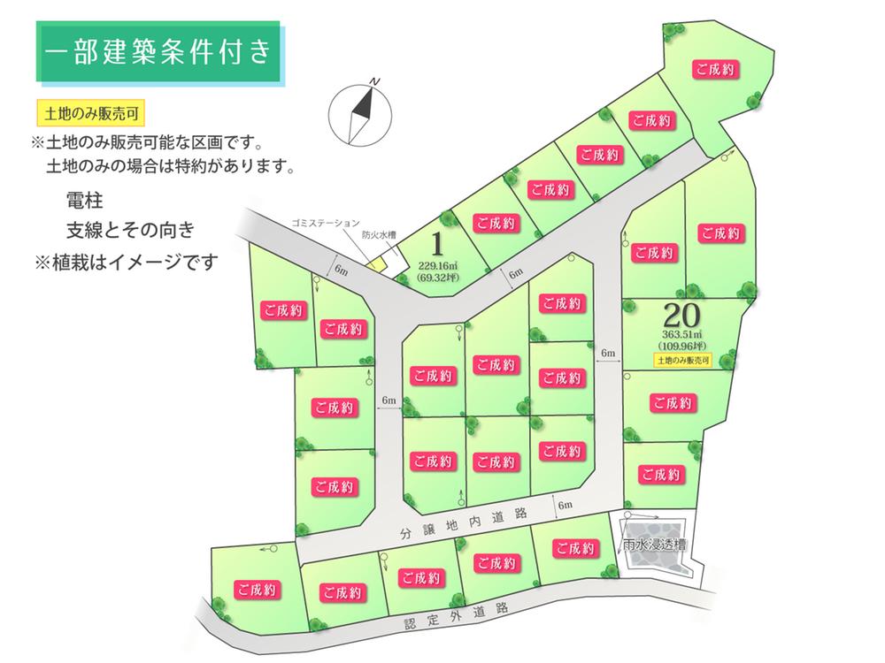 | 建築条件 | 建築条件付建築条件付き土地とは、一定期間内(一般的には3ヶ月以上)に特定の建設会社と建築請負契約を結ぶことを条件にしている宅地のことです。建物の内容は、土地購入者の自由意思により決定可能で、土地売買契約後、建築請負会社と購入した土地に建設する建物について協議することになります。期間内に建築請負契約が成立しなければ売買契約は白紙となり、支払済みの金銭はすべて返却されます。 | ||||