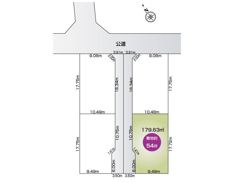 | 建ぺい率・容積率 | 60%・200% | 私道負担・道路 | 無、西6m幅(接道幅2.5m) | ||