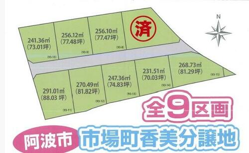 | 備考 | 私道負担:なし・市場町の中心地で好立地!分譲地全9区画!マルナカ市場店まで170m、ドラックストアモリまで400m、市場小学校まで660m。 / 条件等:現況渡し | ||||
