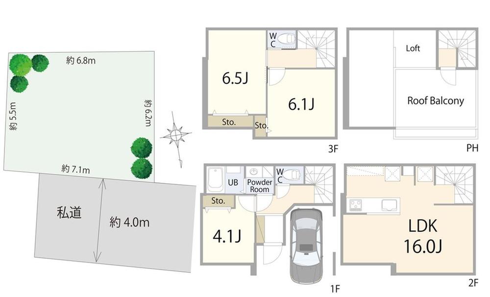 建ぺい率・容積率 | 80%・300% | 私道負担・道路 | 無、北4m幅 | ||