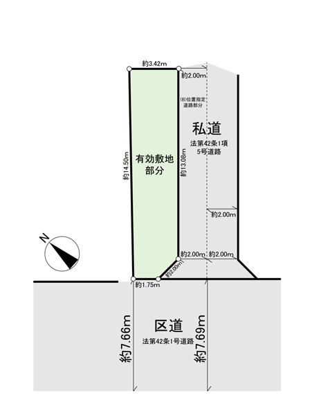 | 建ぺい率・容積率 | 80%・400% | 私道負担・道路 | 29.97㎡、南西7.6m幅、南東3m幅 | ||