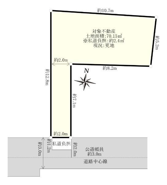 | 建ぺい率・容積率 | 60%・160% | 私道負担・道路 | 2.4㎡、南東3m幅(接道幅2m) | ||