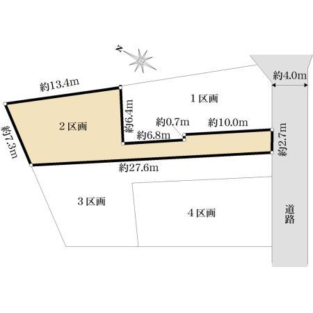 | 建ぺい率・容積率 | 40%・80% | 私道負担・道路 | 無、南東4m幅(接道幅2.7m) | ||