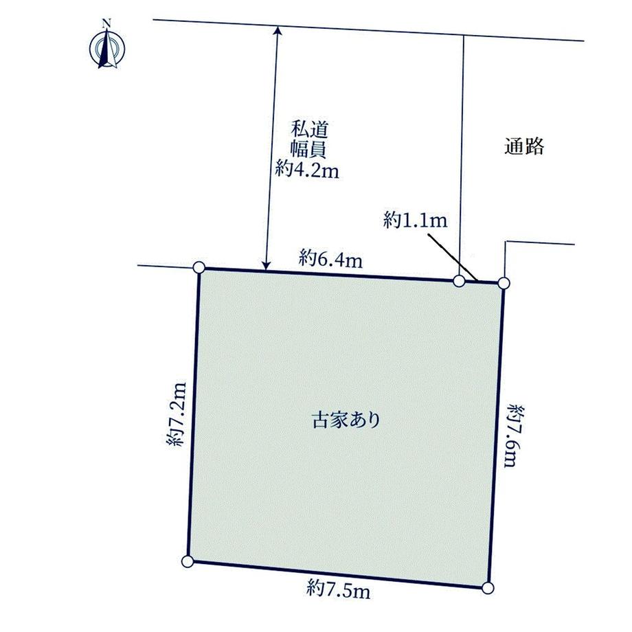 | 建ぺい率・容積率 | 60%・168% | 私道負担・道路 | 共有持分64.98㎡×(1/10)、北4.2m幅(接道幅7.6m) | ||