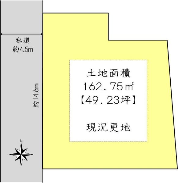 | 建ぺい率・容積率 | 50%・100% | 私道負担・道路 | 4.47㎡、西4.5m幅(接道幅14.6m) | ||