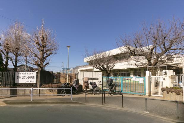 東久留米市立ちゅうおう保育園まで560m 徒歩7分。父母と共に考え合いながら子育ての力を広げ、ひとりひとりの子供を大事にする保育が行われています。春はだんごつくり、秋はさんま焼など、食文化が大切にされています。