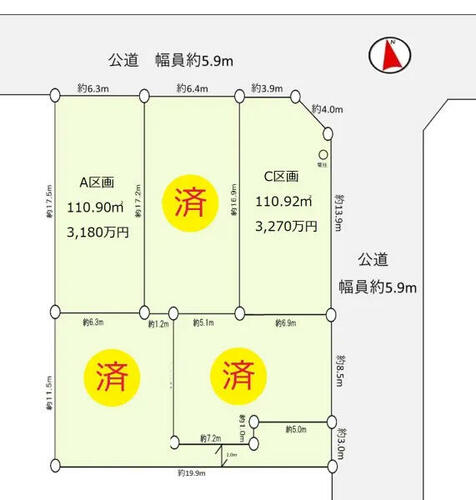 | 接道状況 | 北 5.9m 公道 接面6.3m | ||||