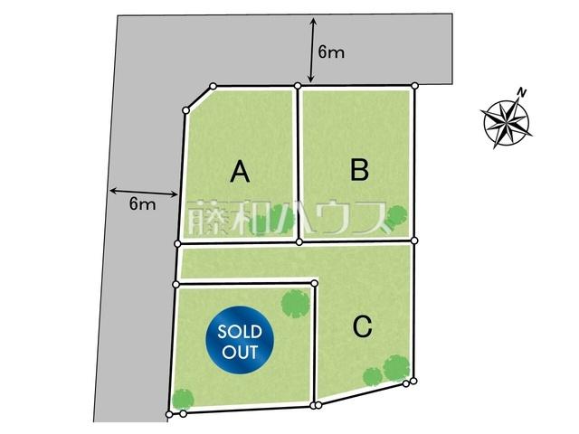 | 建ぺい率・容積率 | 建ぺい率:50% 容積率:100% | 私道負担・道路 | 道路幅:6m、アスファルト舗装、北西6m公道 南西6m公道 | ||