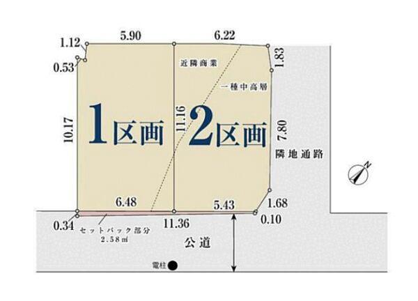 | 地目 | 宅地 | 用途地域 | 近隣商業、1種中高 | ||