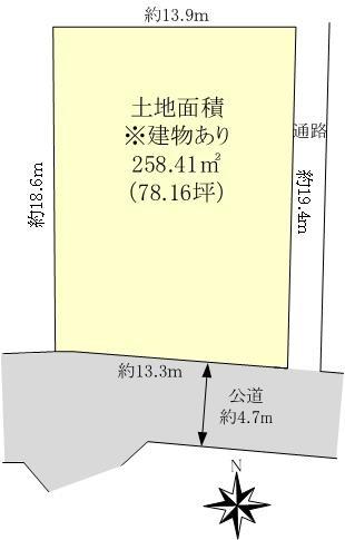| 建ぺい率・容積率 | 40%・80% | 私道負担・道路 | 無、南4.7m幅(接道幅13.3m) | ||