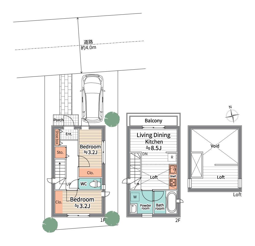建ぺい率・容積率 | 40%・80% | 私道負担・道路 | 無、北3.6m幅(接道幅5.2m) | ||