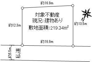 建ぺい率・容積率 | 50%・150% | 私道負担・道路 | 無、北西5.5m幅(接道幅16.9m) | ||