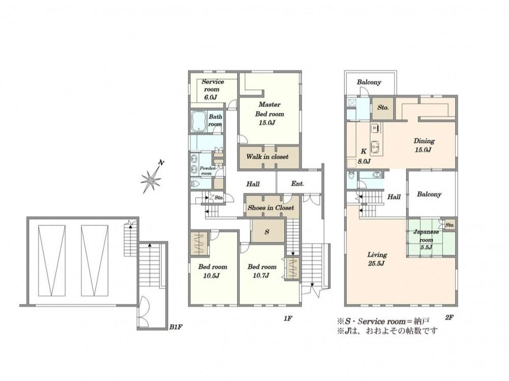建ぺい率・容積率 | 60%・150% | 私道負担・道路 | 無、南東7.2m幅 | ||