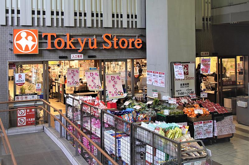 駅降りてすぐに東急ストア、ボラボラという八百屋さん、少し歩くとまいばすけっとがあるので、食材はこれらを買い回る方で安くていいものが手に入ります。ドラッグストアとコンビニも等間隔に立ち並んでおり、歩けば五分以内にどこかしら入れます。地価は高いですが、それに見合うぐらいとても住みやすい街です。お金さえあれば都内随一の快適な街だと思います。