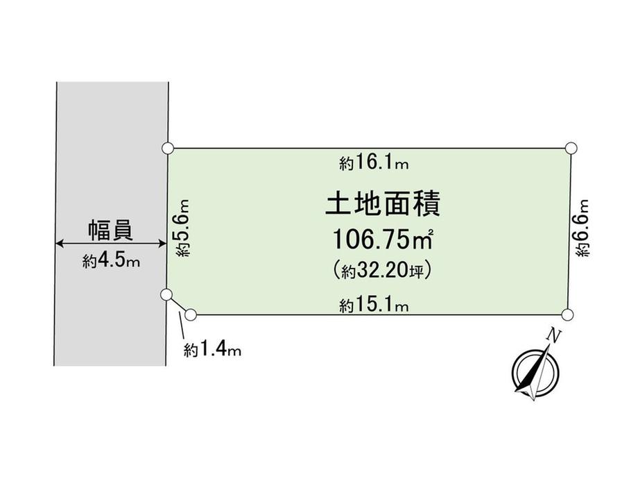 | 建ぺい率・容積率 | 40%・80% | 私道負担・道路 | 共有持分141㎡×(2661/14195)、南西4.5m幅(接道幅5.6m) | ||