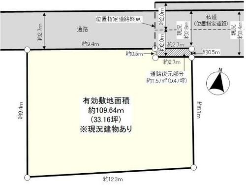 | 接道状況 | 北 2.8m 私道 接面2.7m 位置指定有 | ||||