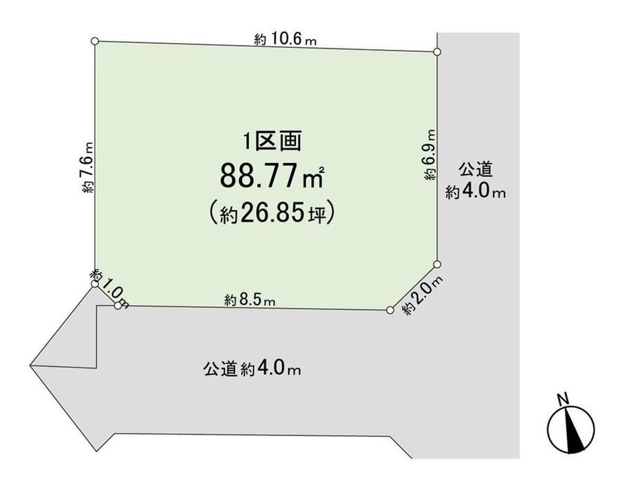 建ぺい率・容積率 | 60%・100% | 私道負担・道路 | 無、東4m幅(接道幅6.9m)、南4m幅(接道幅8.5m) | ||