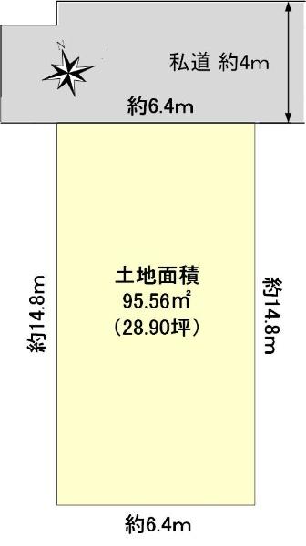 | 建ぺい率・容積率 | 50%・150% | 私道負担・道路 | 11.78㎡、北東4m幅(接道幅6.4m) | ||