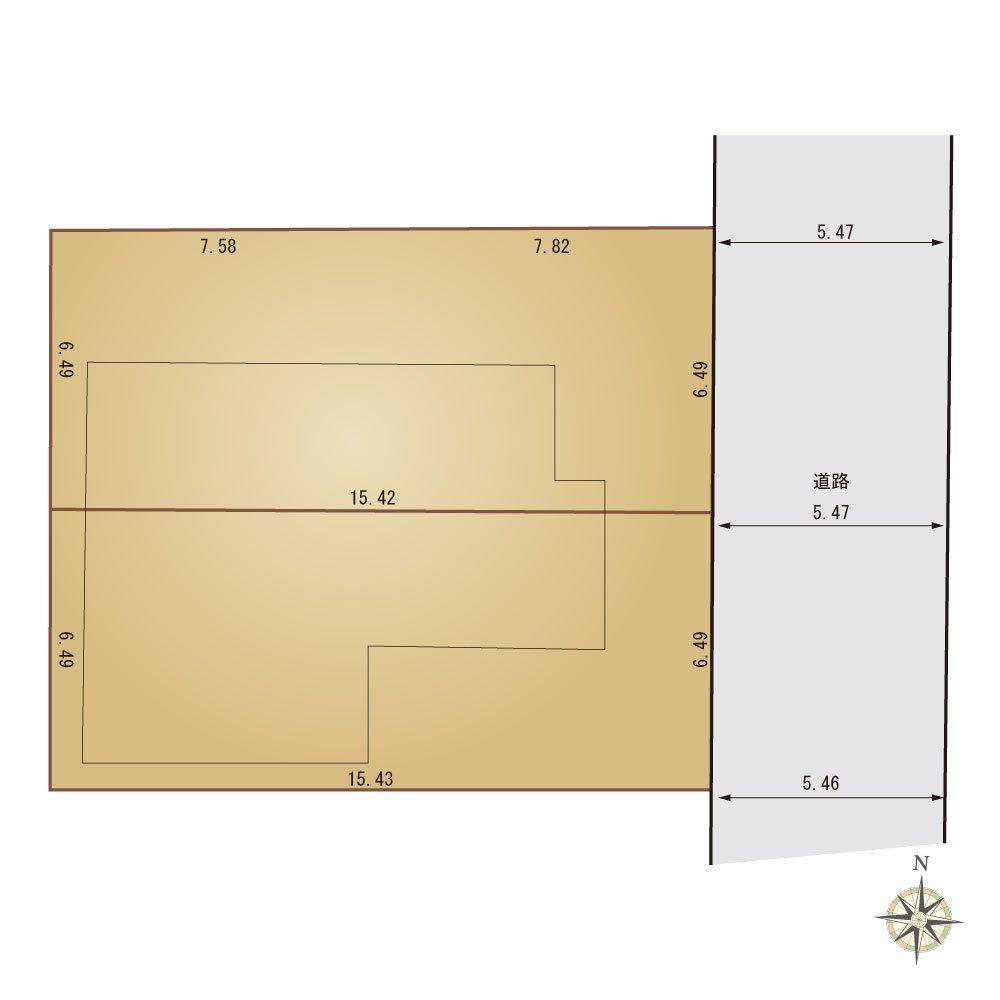 | 建ぺい率・容積率 | 50%/100% | 私道負担・道路 | 道路幅:5.4m、アスファルト舗装 | ||