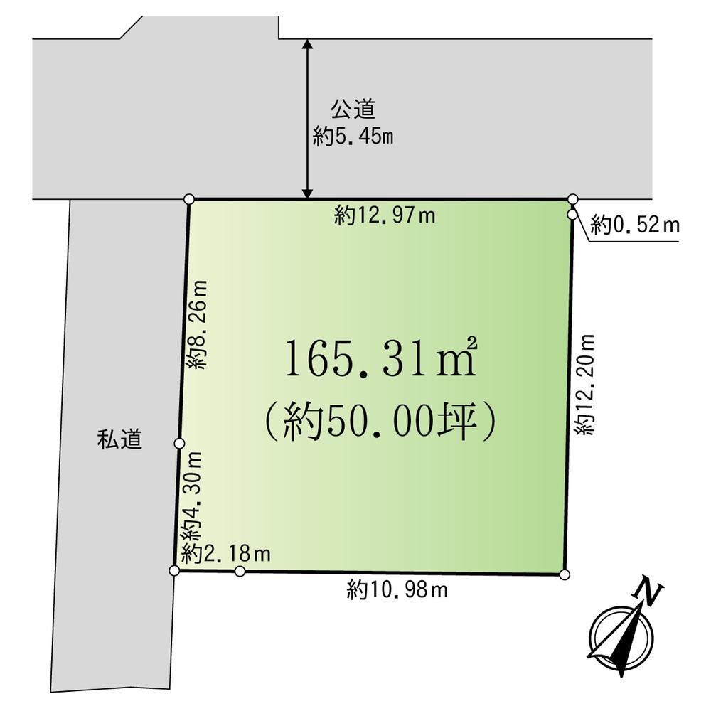 | 建ぺい率・容積率 | 50%・100% | 私道負担・道路 | 無、北西5.4m幅(接道幅12.9m) | ||