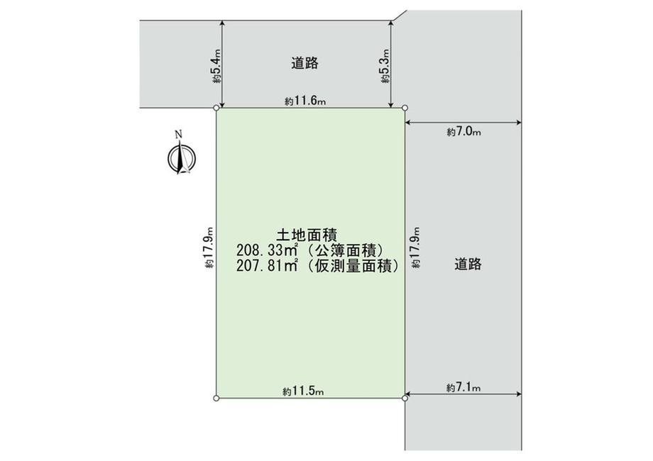 | 建ぺい率・容積率 | 50%・150% | 私道負担・道路 | 無、北5.3m幅(接道幅11.6m)、東7m幅(接道幅17.9m) | ||
