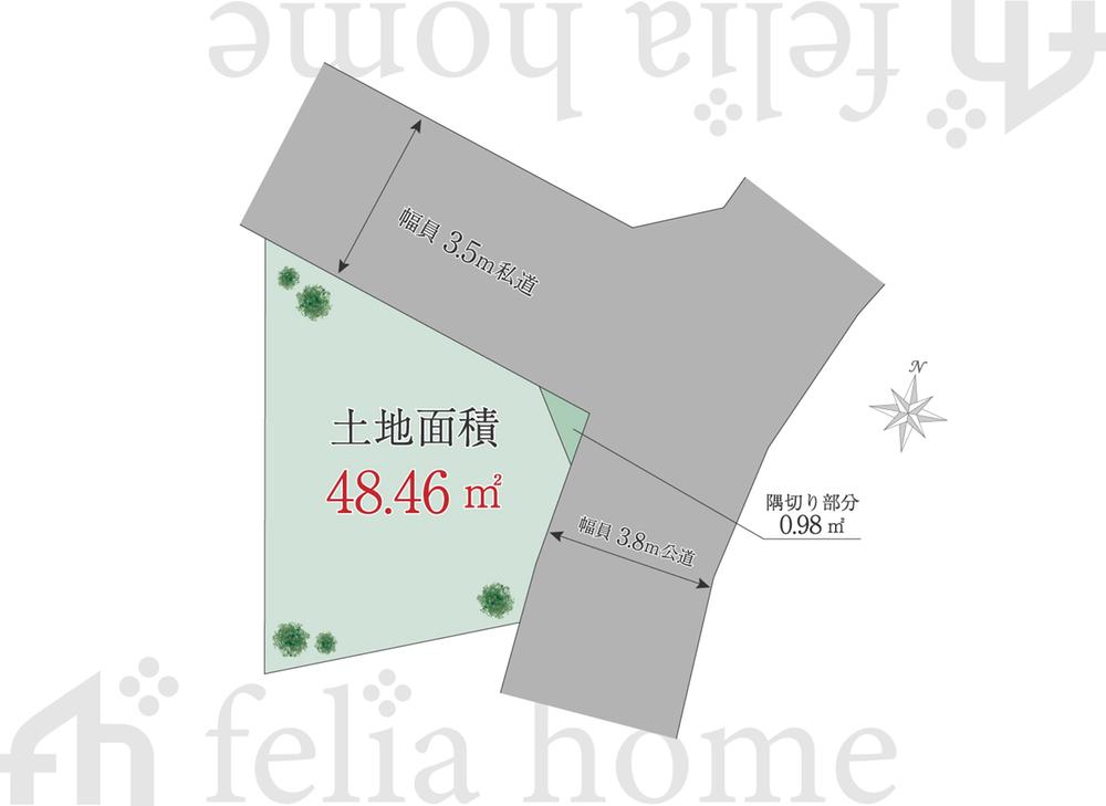 | 建ぺい率・容積率 | 60%・160% | 私道負担・道路 | 無、北3.5m幅、東3.8m幅 | ||
