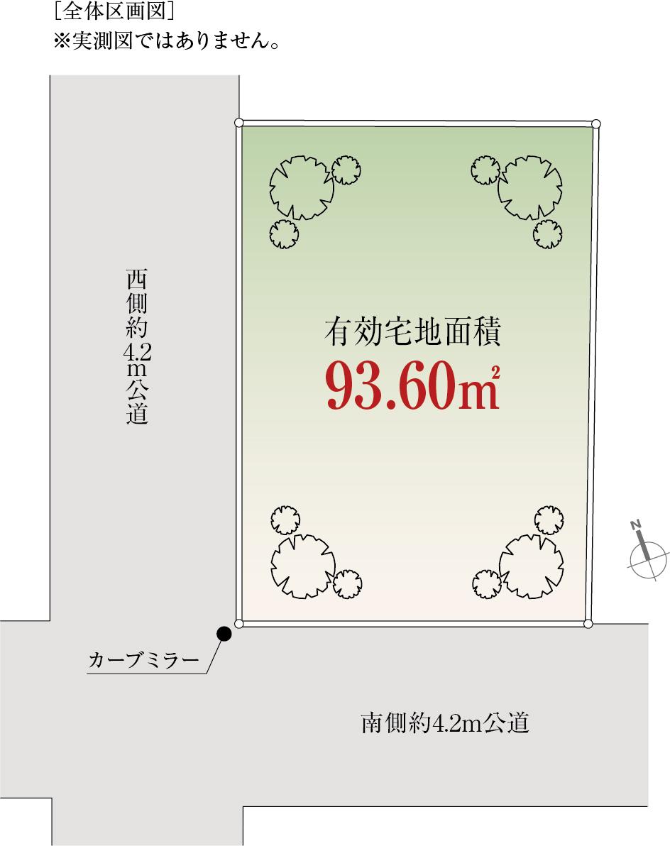| 建ぺい率・容積率 | 60%・200% | 私道負担・道路 | 無、西4.2m幅(接道幅10m)、南4.2m幅(接道幅6.6m) | ||