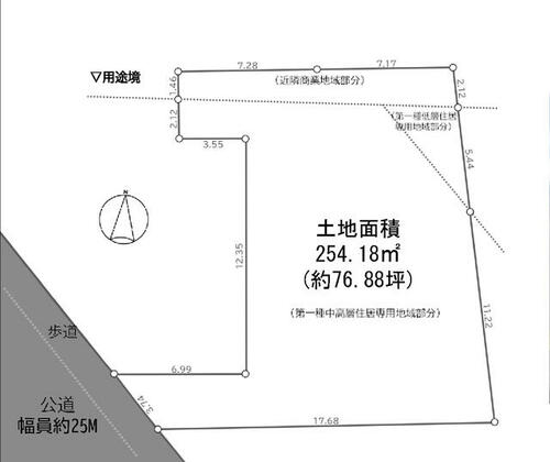 備考 | 敷地内に用途境あり①第1種中高層住居専用地域・準防火地域・建蔽率:60%・容積率:200%・高度地区:20m第2種高度地区・日影規制:3h-2h(測定高4m)②近隣商業地域・防火地域・建蔽率:80%・容積率:400%・高度地区:30m第3種高度地区③第1種低層住居專用地域・準防火地域・建蔽率:50%・容積率:100%・高度地区:第1種高度地区・日影規制:3h-2h(測定高1.5m)・仲介手数料:売買代金の3.3% / 条件等:更地渡し |