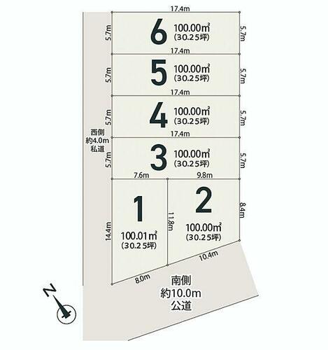 | 接道状況 | 西 4.0m 私道 | ||||