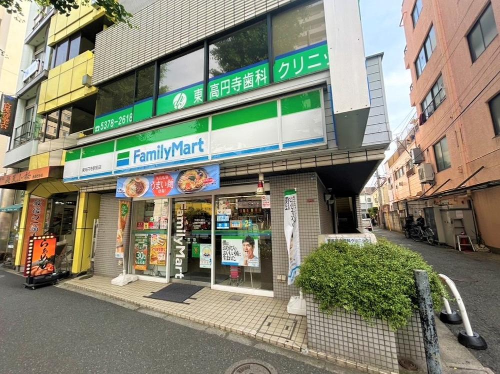 ファミリーマート東高円寺駅前店まで210m 徒歩3分。24時間営業。セルフレジが設置されています。何かちょこっと買い出しに行きたいときや、飲み物だけサッと買いたいときなどに、気軽に立ち寄れる距離にあります。
