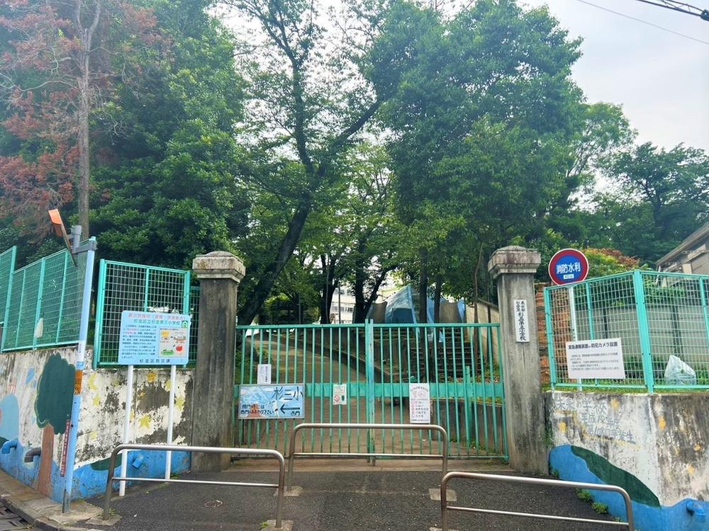 杉並区立杉並第三小学校まで150m 徒歩2分。小さなお子様にとって、重たいランドセルや体操服などの入ったバッグを持っての通学は一仕事。低学年のお子様にも負担の少ない距離です。HPに、学校の風景が写真付きで掲載されています。