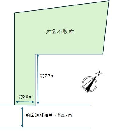 建ぺい率・容積率 | 80%・240% | 私道負担・道路 | 無、南東3.7m幅(接道幅2m) | ||