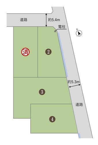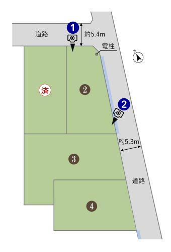 | 建ぺい率・容積率 | 建ぺい率:70.31%(2号地)、64.33%(3号地)、74.72%(4号地)/容積率:200% | 私道負担・道路 | 道路幅:5.3m~5.4m、アスファルト舗装、私道負担なし | ||
