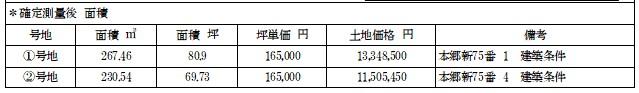 備考 | 設備:公営水道、本下水、個別LPG、■一部境界コンクリートブロック設置工事完了済 ■上下水道整備完了済 ■当該宅地は現況有姿のお引渡し ■当該宅地は公簿売買 ■掲載内容と現況が異なる場合は現況を優先 ■建築の際配置決定後地盤調査を行い調査結果により補強改良が必要な場合は買主様負担となります ■電柱、支線の移動は不可 | ||||