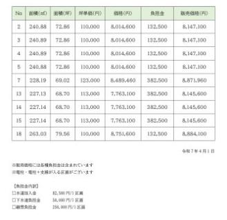 | 最多価格帯 | - | 販売区画数/総区画数 | 1区画/19区画 | ||