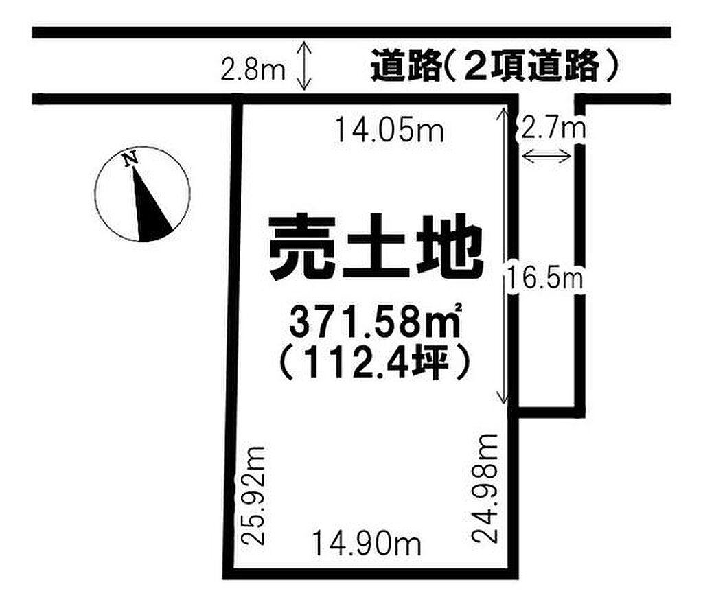 | セットバック | 有 | 接道状況 | 二方 ( 北 2.8m 私道 間口14m ) ( 東 2.7m 私道 間口16.5m ) | ||