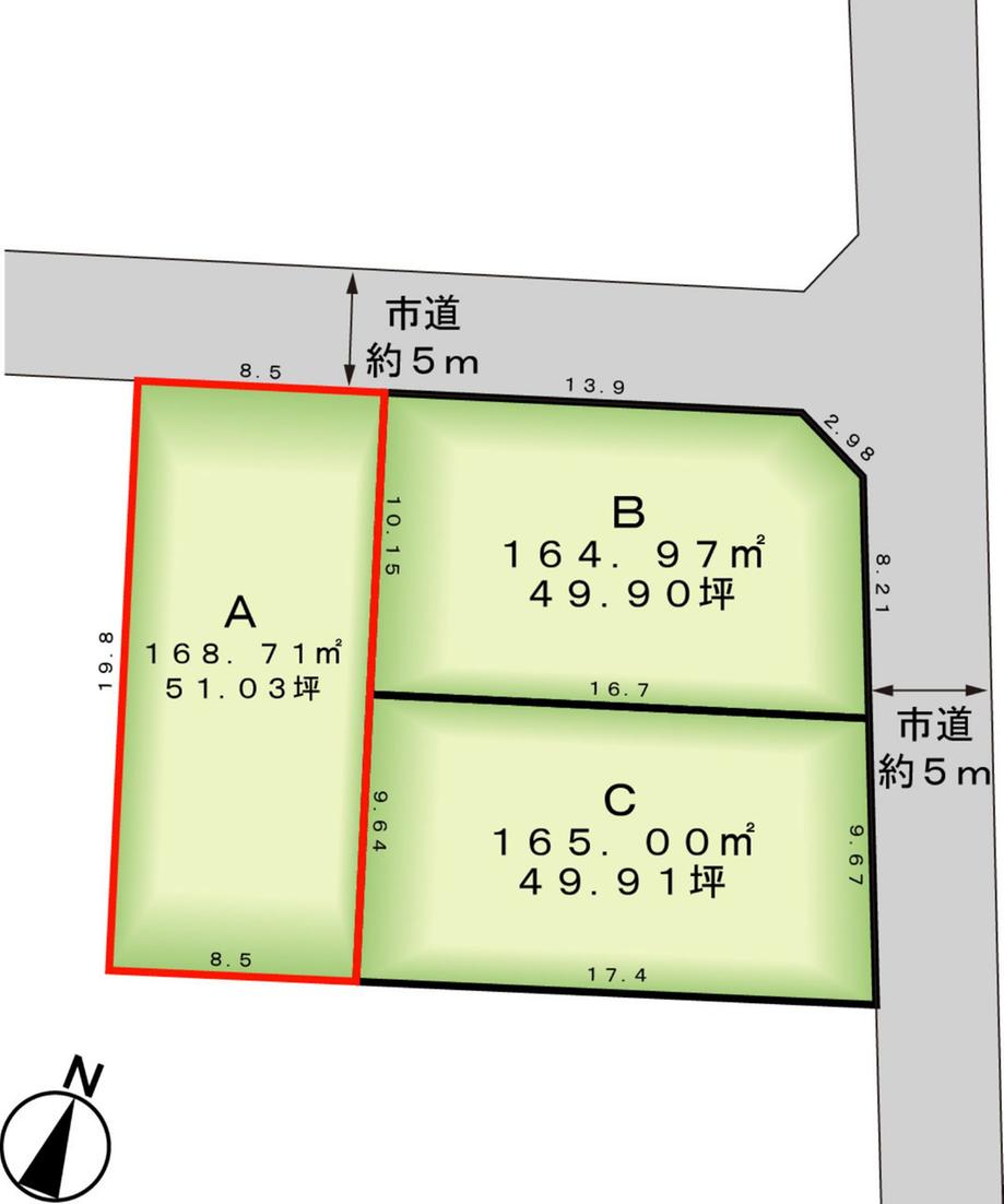| 建ぺい率・容積率 | 60%・200% | 私道負担・道路 | 無、北5m幅(接道幅8.5m) | ||