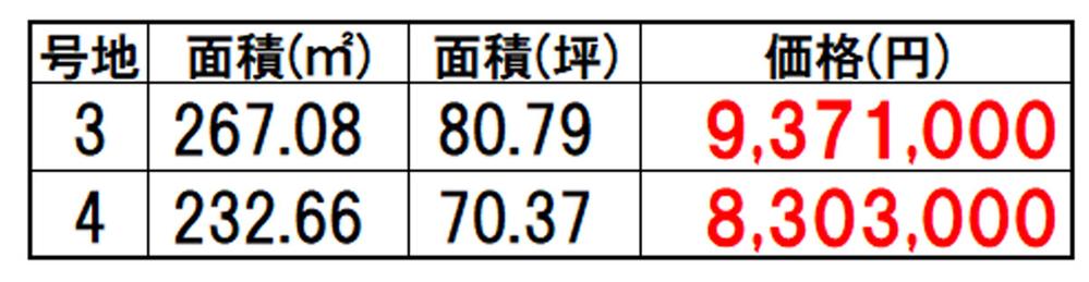 | その他制限事項 | 下水道受益者負担金:300円/㎡ 水道設置:74760円 4号地には電柱1本支線1本入っています。 | ||||